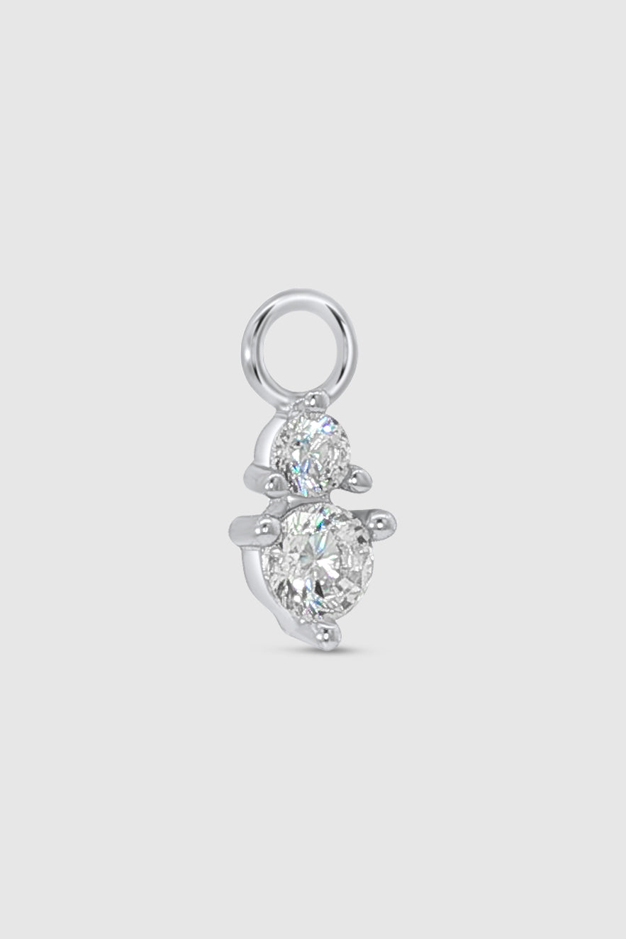 Enhance your jewelry collection with our dazzling charm, specifically designed for our charm compatible Huggies. Featuring two stunning crystals, this charm adds a touch of brilliance and versatility to your look. The elegant design showcases a larger crystal that beautifully complements a smaller one, creating a captivating tiered effect. Easy to attach and detach, this charm allows you to effortlessly personalize your Huggies for any occasion.