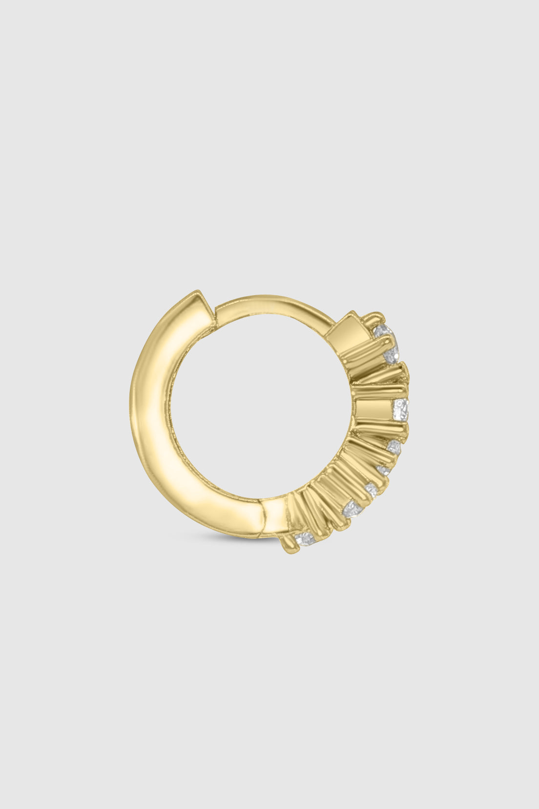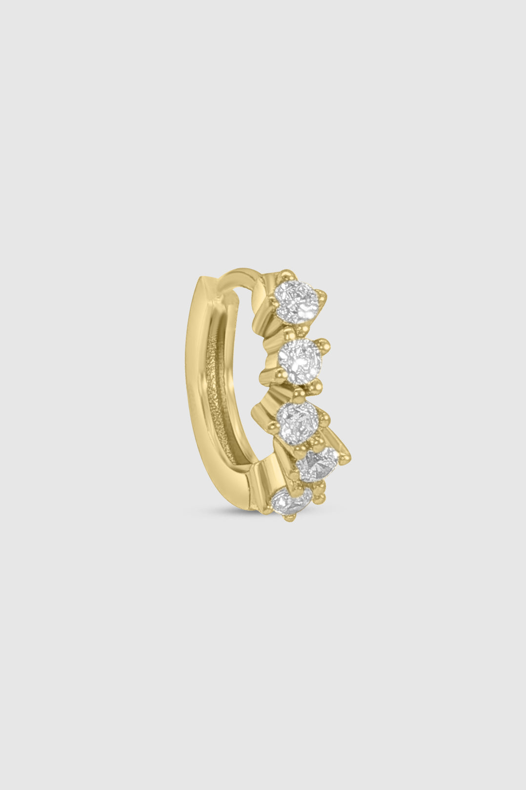 Add a touch of brilliance to your jewelry collection with our Staggered Round Crystal Huggie Earrings. These chic Huggies feature a stunning arrangement of round crystals, artfully staggered to create a captivating sparkle that catches the light beautifully.